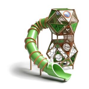 Klättertornet med rutschkana, FOREST 2-2, är ett enastående lekredskap som kan bli mittpunkten på alla lekplatser. Med struktur som imponerar, design som är modern och sin geometriska precision blir det en riktigt ”eyecatcher” som syns på långt håll och inbjuder till utforskning. Barnen kan upptäcka Sfero genom klättring, utforskning och äventyr – varje upplevelse erbjuder oändlig lek och kreativ fysisk aktivitet. Setet utvecklar koordination, styrka och rumslig fantasi, samtidigt som dess stabila struktur garanterar full säkerhet. Space 2-2 kombinerar modern teknik med slående design och skapar en lekstruktur som är både säker och visuellt imponerande.